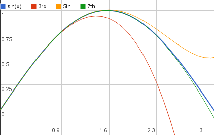 We’ve already computed the first few values of the series so we can calculate the first two terms up front: