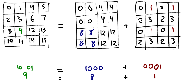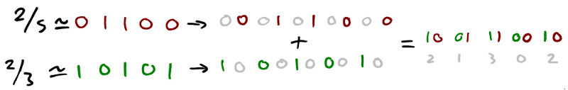 Not bad! An expression that is purely bitwise operations but that computes almost division by 7. How “almost”? It turns out that this works for 0 to 6 but gives the wrong answer for 7: it yields 0 where it should be 1. Okay, it’s off by 1 — let’s try adding 1 then:
