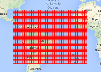 Each half is divided into six roughly evenly sized parts which determines what the first vowel is. (Note: not the first letter, the first vowel, which can be either the first or second letter.) The first vowel in zagi is a so it must be in the northwestern part of the eastern hemisphere. Each of the six divisions are subdivided 20 ways which determines the first consonant. The first consonant in zagi is z which is way down in the bottom right corner. This puts the location almost exactly in the middle of the eastern hemisphere. In fact, zagi is the quad that covers New Delhi.